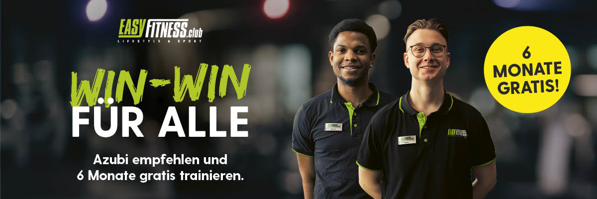 Startet deine Empfehlung bei uns und besteht die Probezeit, trainierst du 6 Monate kostenlos bei EASYFITNESS 💚